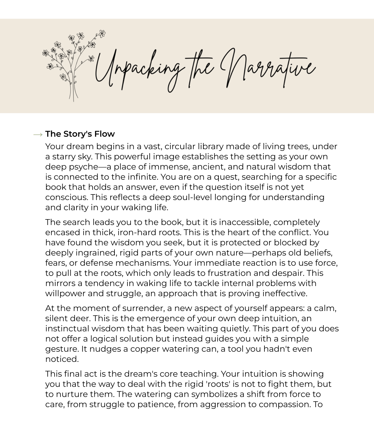 Inside, you’ll find thoughtful interpretations, personalized prompts, and grounded tools to help you integrate what your dream is really trying to show you.